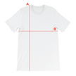 Place the end of the tape beside the collar at the top of the tee (Highest Point Shoulder). Pull the tape measure to the bottom of the shirt.